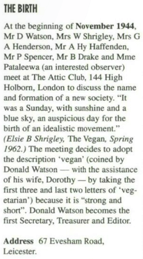 Fay was in London for the inaugural meeting of the Vegan Society.