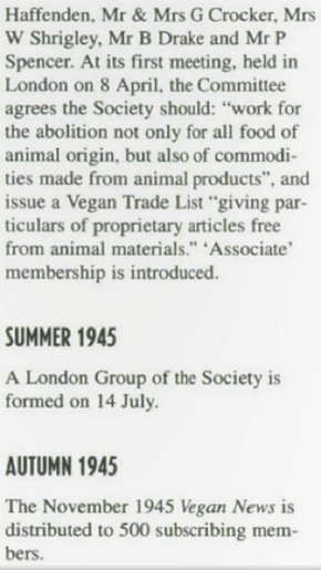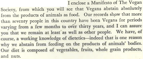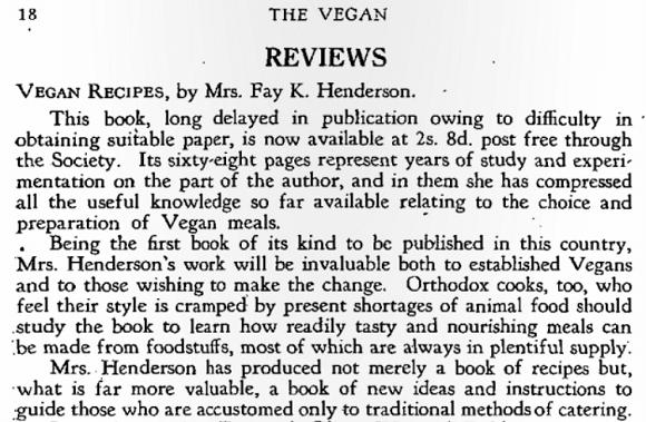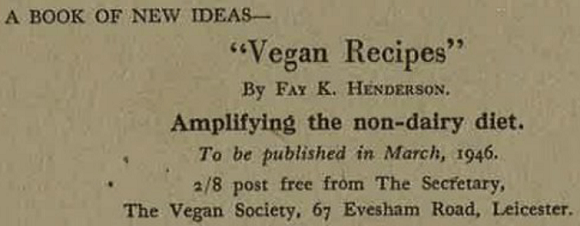 From an article ? VEGAN VALUES by Fay K. Henderson, Vegan Society Secretary ? in The Vegetarian, issue 4, Winter 1947: